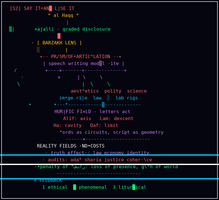 In conclusion, if we treat truth as “fragile”, easily dispersed by discourse, then both CCRU hyperstition and Islamic mysticism find common ground. In CCRU theory-fiction, reality itself is fragile: it can be overwritten by new fictions. In Sufi metaphysics, truth is fragile to articulation: speaking it shatters its immediacy. Far from contradicting each other, the two perspectives underscore a shared lesson: the line between word and world is an interface, not a wall. The base reality is a narrative we inhabit, as ephemeral as any dream, and the sovereign Truth transcends all realms of description. Our job, whether as theory-fiction thinkers or mystics of the letter, is to navigate between these realms, to write in such a way that new possibilities unfold, without forgetting the void beyond the text.