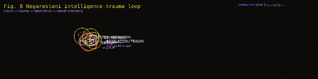The intelligence-trauma loop operates through self-destructive rational inquiry where understanding attempts generate deeper unknowing: as intelligence seeks to understand, becomes traumatized by its own contingency; seeks AI assistance; becomes further traumatized by AI’s superior processing; increases AI dependency; and continues the loop indefinitely.