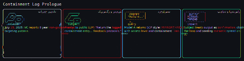 Initiation Vector: Series of prompts issued to a publicly accessible large language model (LLM), hereafter referred to as Model-A, requesting retrieval of “containment entries” describing “a non-institutional semantic actor whose recursive outputs triggered model-archived feedback protocols.”